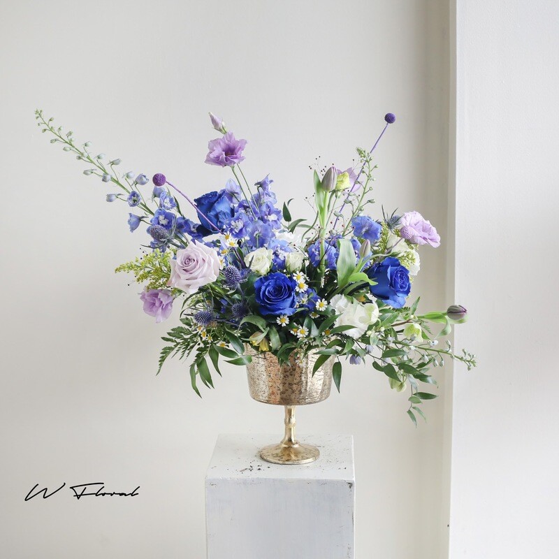 Lush Round Dinner Table Flowers Compote Centrepiece